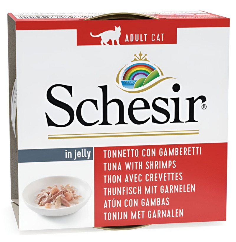 SCHESIRSchesir Lata de filetes de Atún con Gambas en gelatina para gatos