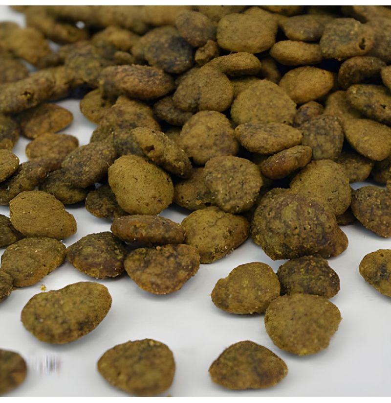 Proteína 27%, Contenido de grasa 12%, Fibra bruta 4.5%, Ceniza 5.5%, Humedad 8%.