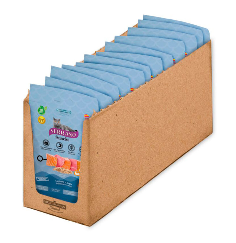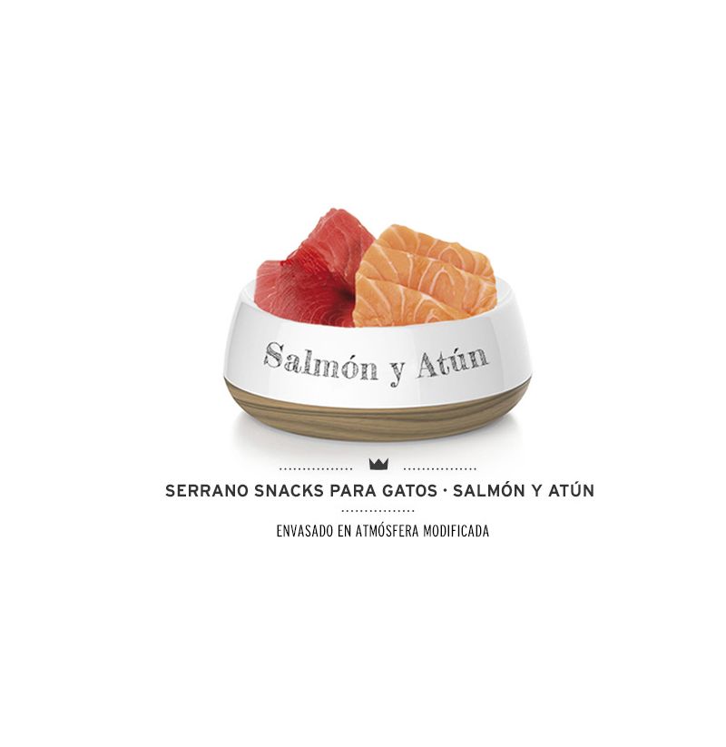 Riquísimo snack Serrano de Salmón y Atún para gatos.