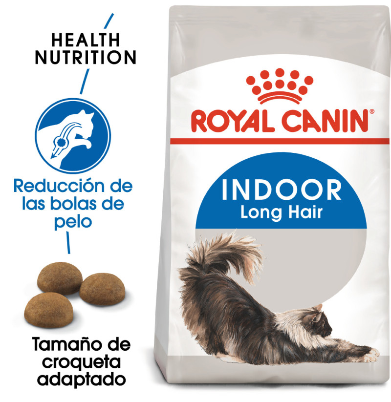 Royal Canin Indoor Long Hair para gatos es el indicado para aquellos que pasan largos periodos acicalándose