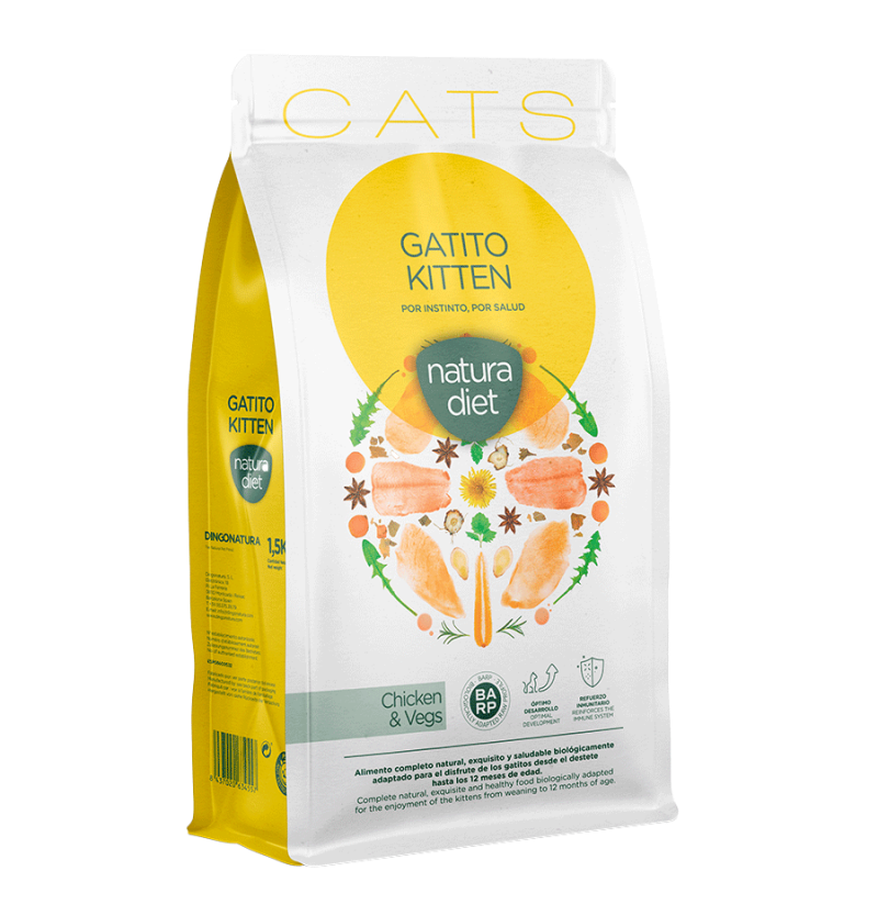 Alimento completo, natural, nutritivo y saludable biológicamente adaptado para el disfrute de los gatitos desde el destete hasta los 12 meses de edad. Su especial selección de ingredientes refuerza su sistema inmunitario, favoreciendo un desarrollo sano y un crecimiento óptimo.