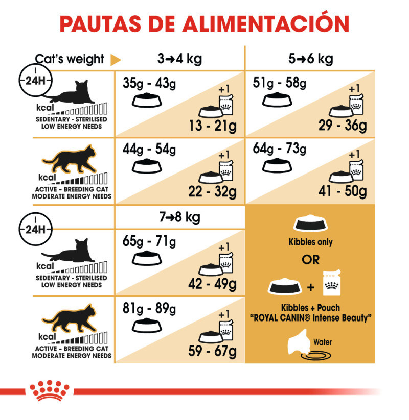 PESO DEL GATO | BAJAS NECESIDADES DE ENERGIA | ALTAS NECESIDADES DE ENERGIA |