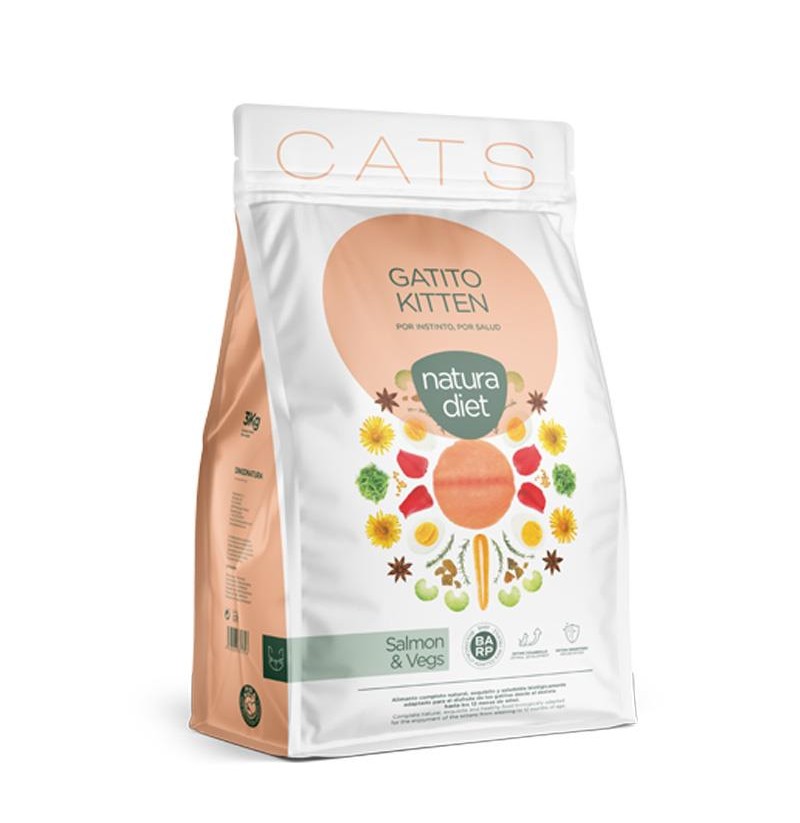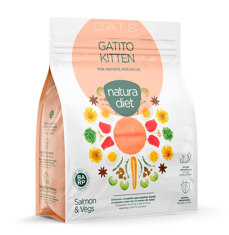 Natura Diet kitten de Salmón es uno de los piensos más gustosos para gatitos del mercado. Además es un alimento natural y de alta digestibilidad