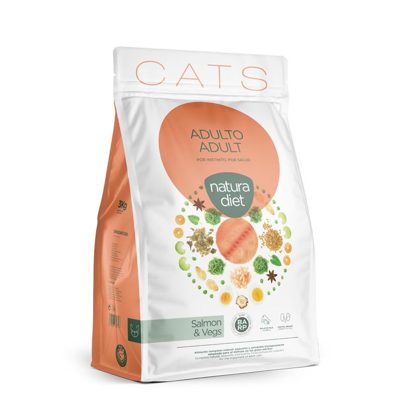 Natura Diet Cat Adult de Salmón es uno de los piensos más gustosos para gatos del mercado. Además es un alimento natural y de alta digestibilidad