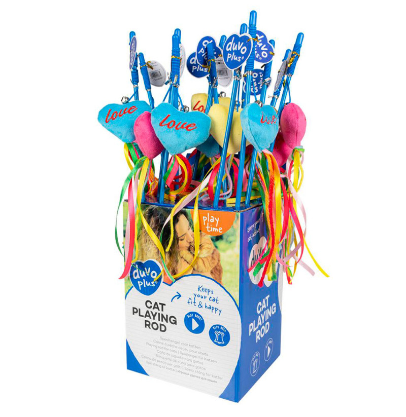 Juguete Duvo Caña Love Mix es la indicada para poder estimular a tu gato a jugar contigo. Los gatos con frecuencia tienen tendencia al sobrepeso, por lo que un juguete activo ayuda a mantener al gato en forma y saludable. En la caña cuelga un corazón de peluche y una campanita para captar la atención de la mascota y así proporcionarle más diversión.