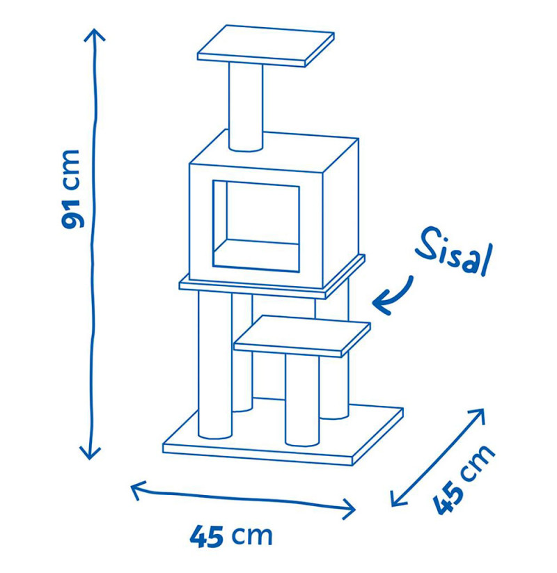 El Rascador Angele Beige le permite a tu gato jugar y relajarse. Dispone de 3 bandejas blandas y suaves por lo que será el lugar favorito de tu gato para descansar y controlar todo desde las alturas como a ellos les gusta. Una de ella es como una caja con una apertura para que tu gato se ponga dentro a descansar o para esconderse. Los postes contienen sisal por lo que tu gato disfrutará durante horas rascando y afilando sus uñas y así evitarás que lo haga en los muebles de la casa.