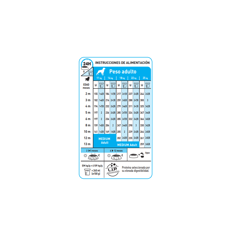 | 22 KG | 236 gr | 287 gr | 310 gr | 323 gr | 331 gr | 328 gr | 297 gr | 267 gr | 238 gr | 236 gr | 235 gr | Medium Adult | Medium Adult |