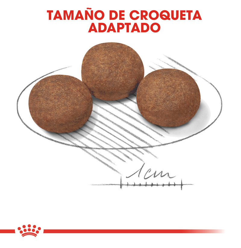 Royal Canin Medium Puppy está especialmente formulado para satisfacer las necesidades nutricionales de los cachorros de tamaño mediano. Esta fórmula es adecuada para cachorros de 2 a 12 meses de edad, que alcanzarán un peso de adulto de 11-25 kg. Este alimento a medida contiene nutrientes como vitaminas C y E, que han demostrado contribuir al desarrollo saludable del sistema inmunitario de los cachorros. Está enriquecido con un ácido graso omega-3 (DHA), que ha demostrado científicamente favorecer el desarrollo cerebral saludable de los cachorros. Una combinación de prebióticos beneficiosos (como FOS, MOS y pulpa de remolacha) y proteínas de alta digestibilidad favorece el equilibrio saludable del microbioma (flora intestinal) y la salud digestiva. La fórmula también cuenta con un contenido energético óptimo, diseñado para satisfacer las necesidades energéticas de cachorros de tamaño mediano en crecimiento. La croqueta está diseñada para ser lo suficientemente grande como para evitar que los cachorros la engullan, pero no tan grande como para que sean reacios a comer. Al masticar, se produce un efecto de cepillado que ayuda a mantener la salud dental de tu cachorro.