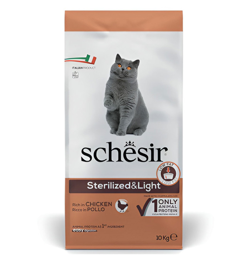Formulado con una única fuente de proteína animal (pollo), que es también el primer ingrediente, se trata de un alimento sabroso, de fácil digestión, completo y equilibrado para satisfacer las necesidades nutricionales de gatos adultos esterilizados de todas las razas. Su bajo contenido en grasas y su alto contenido en fibra, respecto al producto de mantenimiento, ayudan a los gatos a mantener su peso ideal.