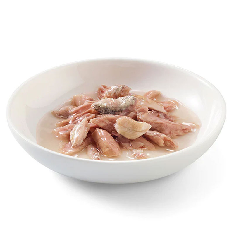 La receta se basa en auténticos filetes de atún delicioso y se hace aún más atractiva con una cobertura de sabrosas sardinas. Cocido en su propio líquido para gatos que aman el sabor natural y una consistencia más fluida.