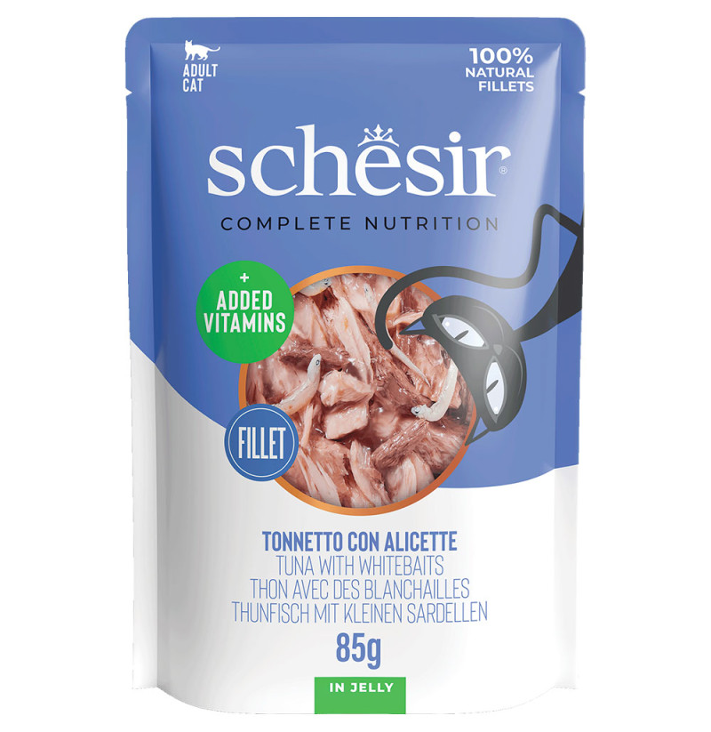SCHESIRSchesir Lata de filetes de Atún con Chanquete (Anchovetas pequeñas) en gelatina para gatos