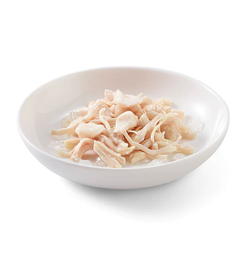 La receta se basa en auténticos filetes de pollo delicioso combinados con lubina, un pescado conocido por su riqueza en proteínas y omega-3, para un tentador encuentro de sabores. Se presenta en gelatina para satisfacer los gustos de los gatos que aman el sabor natural combinado con una consistencia más sólida en el bol.