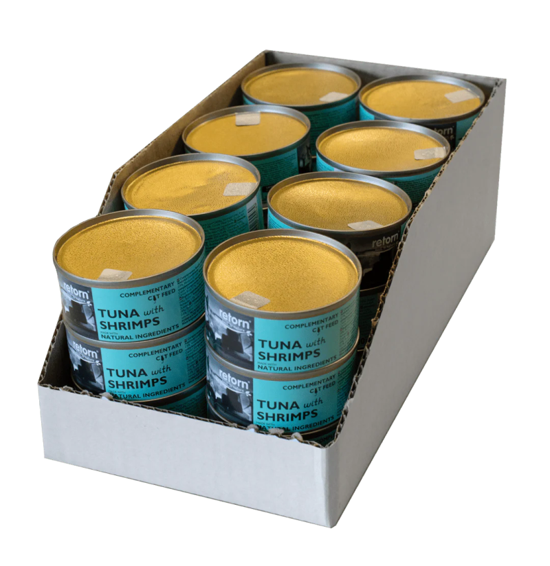 La comida húmeda de atún con gambas para gatos de Retorn está hecha con ingredientes naturales que conservan su sabor. De esta forma, los gatos disfrutan de un alimento rico nutricionalmente y con un sabor natural.