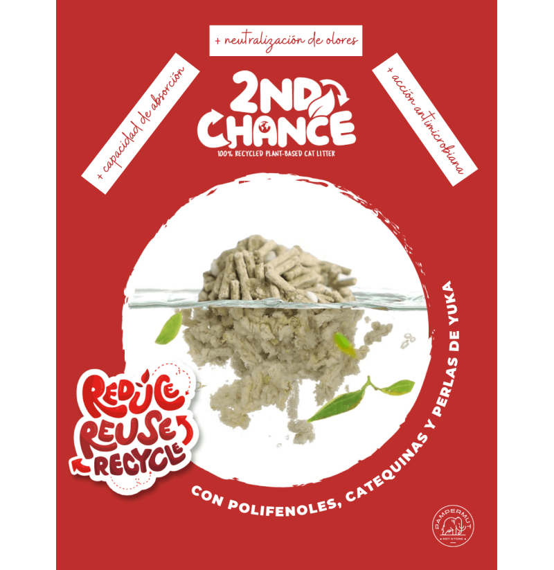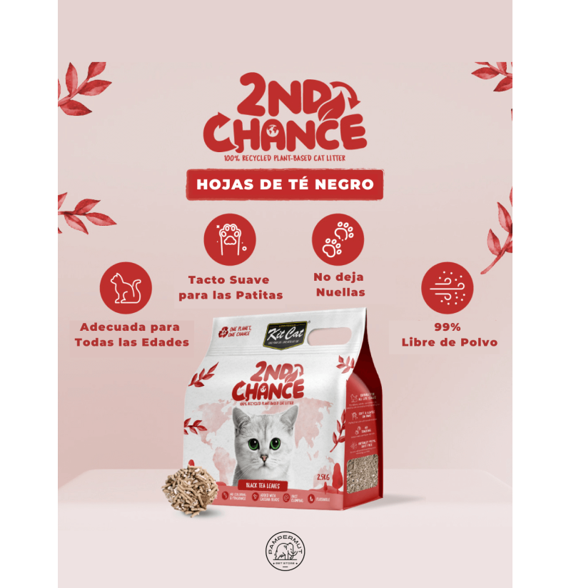 La arena aglomerante Kit Cat 2nd Chance está elaborada con ingredientes reciclados y naturales, como posos de semillas de café, cáscara y fibra de guisante, y perlas de yuca y maíz. Esta combinación ofrece una opción 100% ecológica y biodegradable, ideal para quienes buscan un producto sostenible sin comprometer el rendimiento.