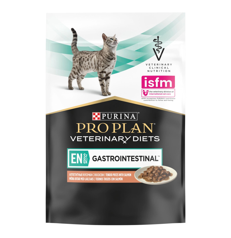 Purina Pro Plan Veterinary Diets Feline EN Gastrointestinal Sobres Salmón es un alimento dietético completo y altamente digestible, diseñado para:
