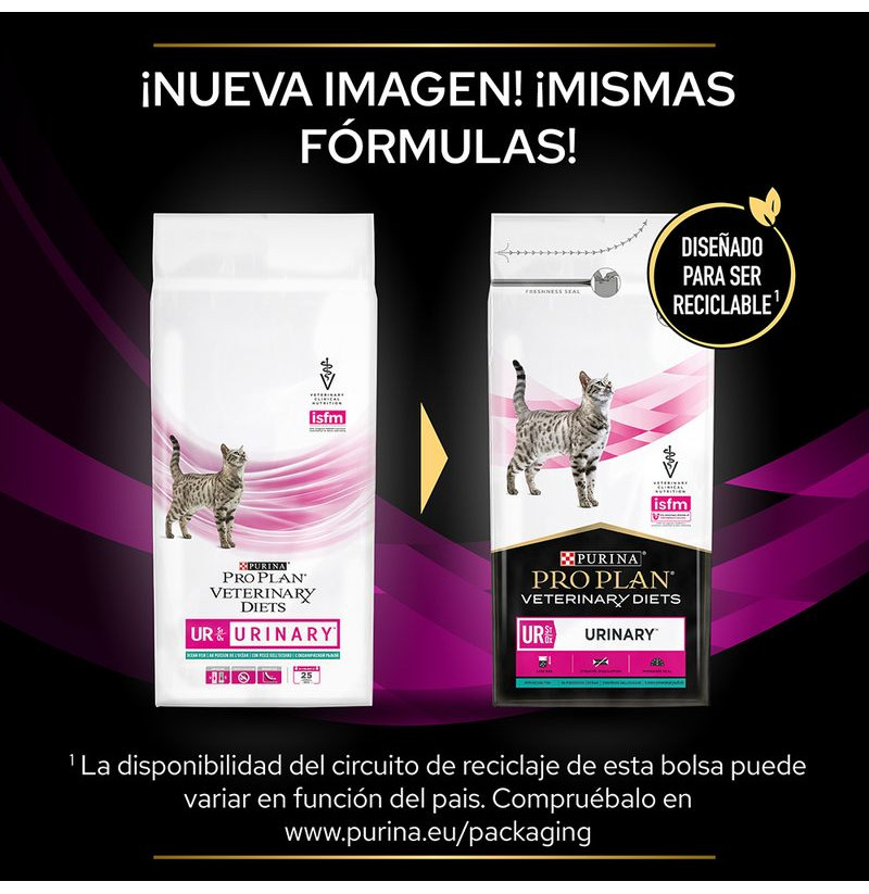 La fórmula Pro Plan Veterinary Diets Feline UR Urinary de Purina está diseñada para el manejo de las enfermedades del tracto urinario inferior en gatos (FLUTD). Incluye versiones en pienso seco, mousse, sobres y comida húmeda, todas desarrolladas con la tecnología patentada St/Ox, pensada para: