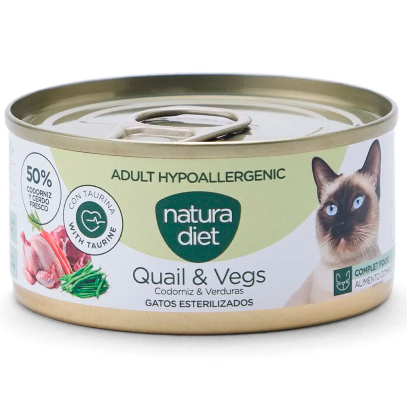 Natura Diet Cat Paté Hypoallergenic Quail & Vegs (Codorniz y Verguras) Latas para gatos