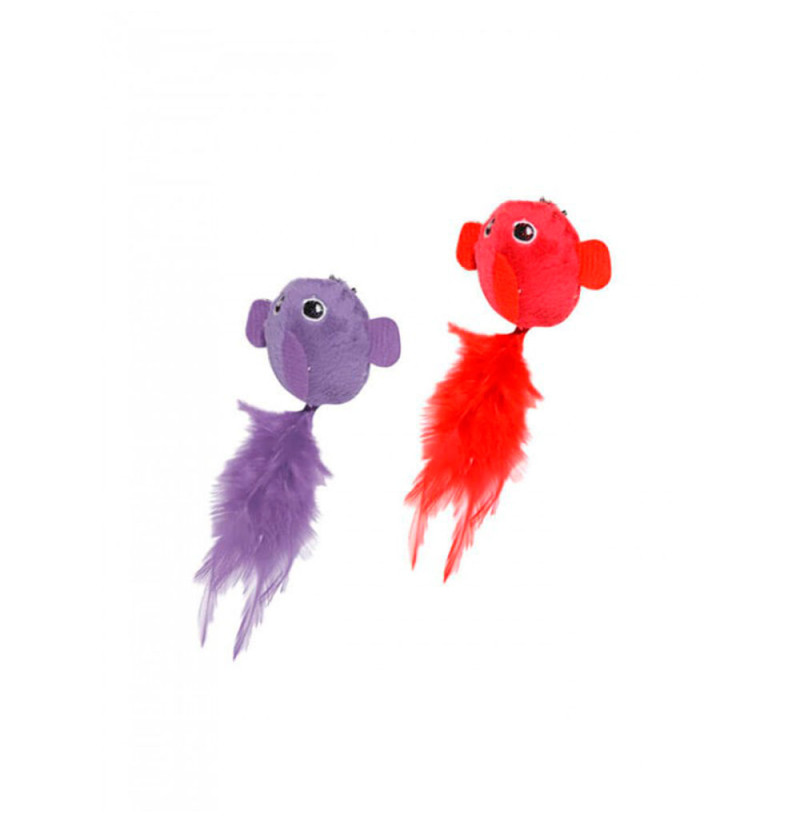 Juguete Duvo Pájaros con Plumas es el ideal para satisfacer el instinto de caza de tu gato. Están rellenos de una suave mousse y contiene hierba gatera en el interior, por lo que hace que sea irresistible para los gatos. Es un juguete muy suave y divertido con el que tu gato podrá llevarlo en la boca por todas las partes de la casa para jugar durante horas. A demás como todos sabemos, las plumas les vuelven locos a los gatos, por lo que este juguete no será indiferente para ellos ya que tienen una cola de plumas en las que jugarán durante horas sin cansarse.