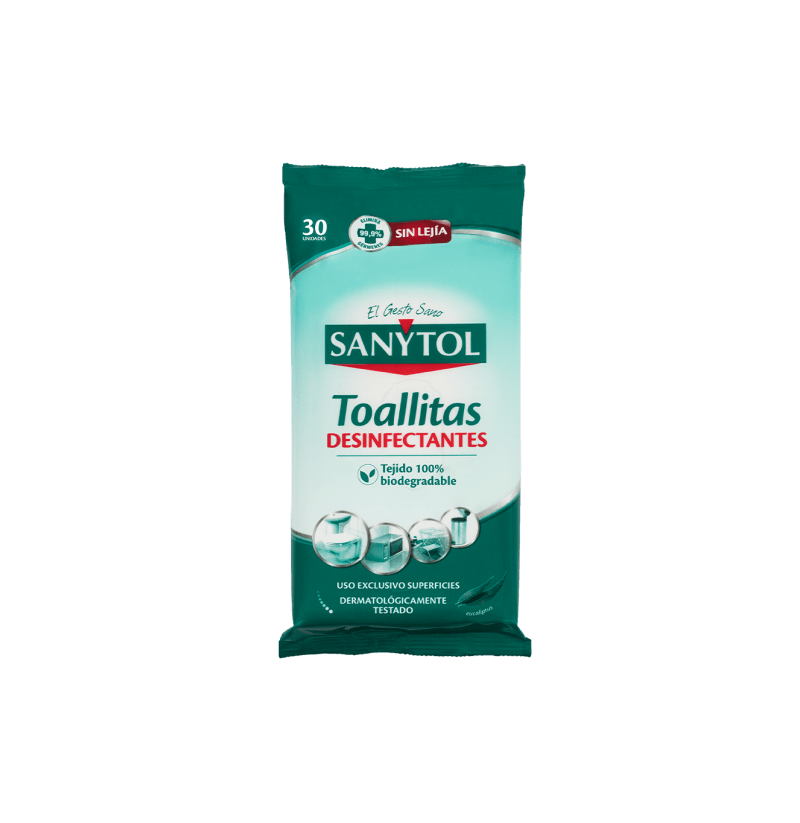 https://tienda.todomascota.es/hogar-y-mas/28173-sanytol-toallitas-desinfectantes-sin-lejia-para-superficies-3045206312257.html#/cantidad-30_toallitasSANY170040Sanytol Toallitas desinfectantes sin lejía para superficies<p>Toallitas desinfectantes multisuperficies que eliminan el 99,9% de gérmenes de una pasada. <strong>Eficaces contra bacterias, hongos y virus envueltos</strong>.</p> <p></p> <p>Eliminan fácilmente la suciedad y desinfectan en profundidad sin necesidad de usar lejía. Además, <strong>eliminan malos olores</strong> dejando un agradable <strong>aroma a eucaliptus</strong>.</p> <p><strong>No manchan los textiles</strong> ni las superficies delicadas como la madera o el mármol. Testadas dermatológicamente y con tejido 100% biodegradable.</p> <p></p> <ul> <li>Elimina el 99,9% de gérmenes</li> <li>Limpia y desinfecta</li> <li>SIN lejía</li> <li>No mancha los tejidos ni daña las superficies</li> <li>Toallitas biodegradables</li> <li>Testado dermatológicamente</li> </ul> <p></p> <p></p> <h3>Usos y aplicaciones</h3> <ul> <li>WC, lavabos y espacios del baño.</li> <li>Nevera, encimeras, fregaderos, microondas y, en general, espacios de la cocina.</li> <li>Pomos de puerta, teléfonos, teclados de ordenador, mandos a distancia, cubos de basura…</li> <li>Universo bebé: juguetes, tronas, cambiadores.</li> <li>Accesorios y espacios de las mascotas.</li> </ul> <p></p> <h3>Modo de empleo</h3> <p>Frotar las superficies a tratar con las toallitas. No necesita aclarado, salvo en superficies en contacto con alimentos o en contacto continuado con bebés o mascotas, donde se recomienda dejar actuar 5 minutos y aclarar.</p>https://tienda.todomascota.es/59288-large_default/sanytol-toallitas-desinfectantes-sin-lejia-para-superficies.jpg2.2506instockSANYTOL2.25061.86002023-11-09T17:21:56+0100/Hogar y más/Hogar y más/Higiene e Limpieza