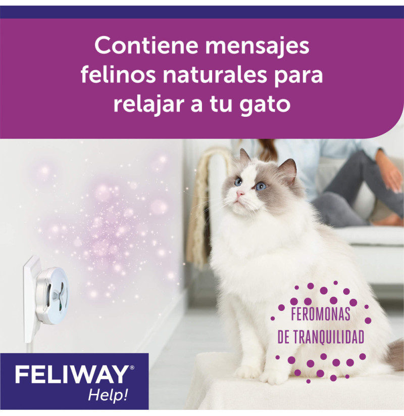 Su aplicación es sencilla: solo necesitas insertar el recambio en el difusor, colocarlo en la habitación donde tu gato pasa más tiempo y conectarlo en un enchufe, preferiblemente dos días antes del evento estresante.