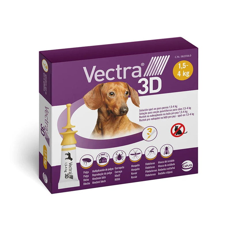 Mantén a tu perro sano, libre de parásitos y protegido frente a infestaciones con Vectra 3D Pipetas Antiparasitarias para Perros, el aliado perfecto en el cuidado de tu mascota.