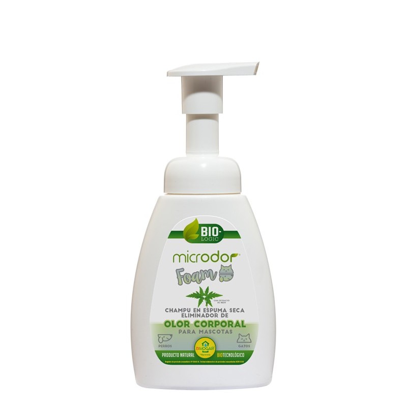 MICRODORChampú en espuma seca sin necesidad de agua eliminador del olor corporal para animales de compañía.