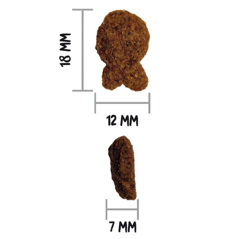Composición: Carnes deshidratadas 18%, pescado 15% (pescado fresco* 10%, pescado deshidratado 5%), trigo integral* (12%), cebada integral* (12%), grasa de pollo, salvado de trigo* (9%), maíz integral* (9%), arroz integral* (6%), guisantes enteros* (3%), manzana fresca* (1%), aceite de salmón, semilla de lino* (1%), pulpa de remolacha, fructo y manano oligosacáridos, levadura de cerveza* (0,5%), hierbas botánicas 0,02% (hinojo*, equinácea*, tomillo*), extracto de yuca shidigera. *Ingredientes naturales