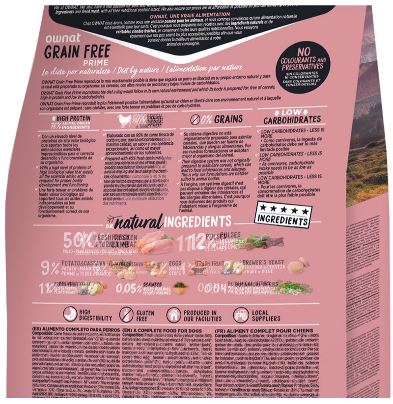 Ownat Prime grain free Mini Adult Lamb (cordero) para perros mini