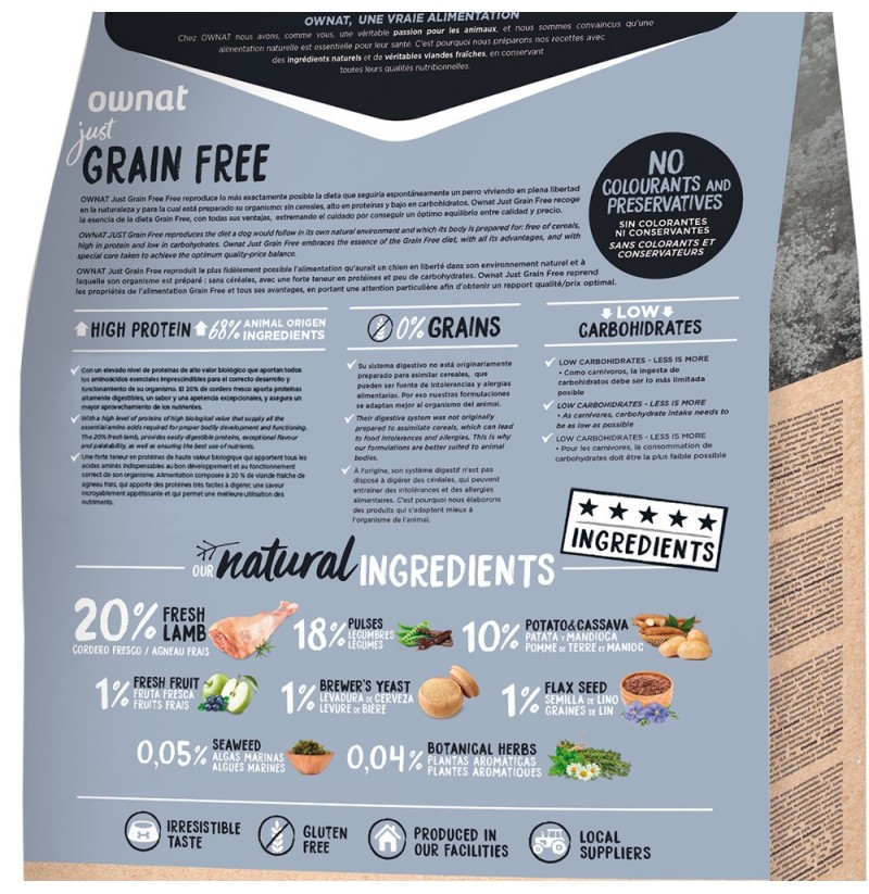 Ownat Just grain free Adult Lamb (cordero) para perros
