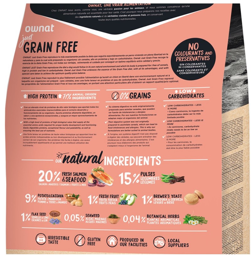 Ownat Just grain free Salmon & Seafood (salmón y mariscos) para perros