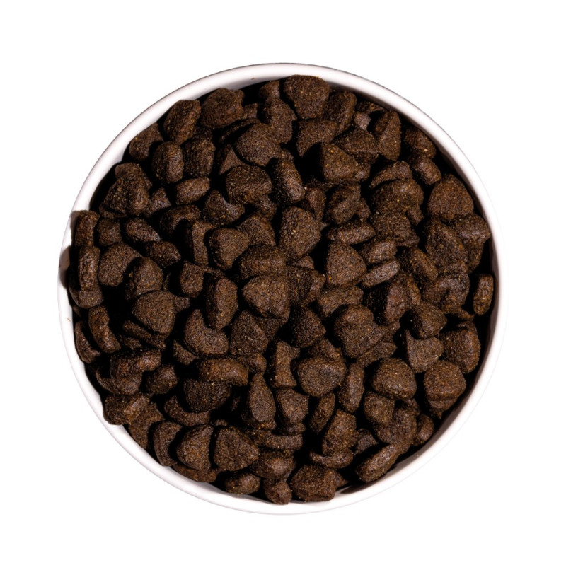 Pescado 37% (salmón fresco* mín. 10%, marisco fresco* mín. 10% antes de la extrusión, salmón hidrolizado 10% y salmón deshidratado 7%), carne deshidratada de pollo (28%), guisantes enteros*, grasa avícola (preservada con antioxidantes naturales), raíces de mandioca*, vaina de algarroba*, patata deshidratada*, proteína hidrolizada de pollo, levadura de cerveza*, pulpa de remolacha, manzana fresca* (1%), semilla de lino*, algas marinas deshidratadas*, sal gema*, aceite de pescado (preservado con antioxidantes naturales), fructo y manano oligosacáridos, alfalfa deshidratada*, glucosamina, condroitina, yucca Schidigera, arándanos*, tomillo*, flor de manzanilla*, hinojo*, equinácea*, té verde*. *Ingredientes naturales.