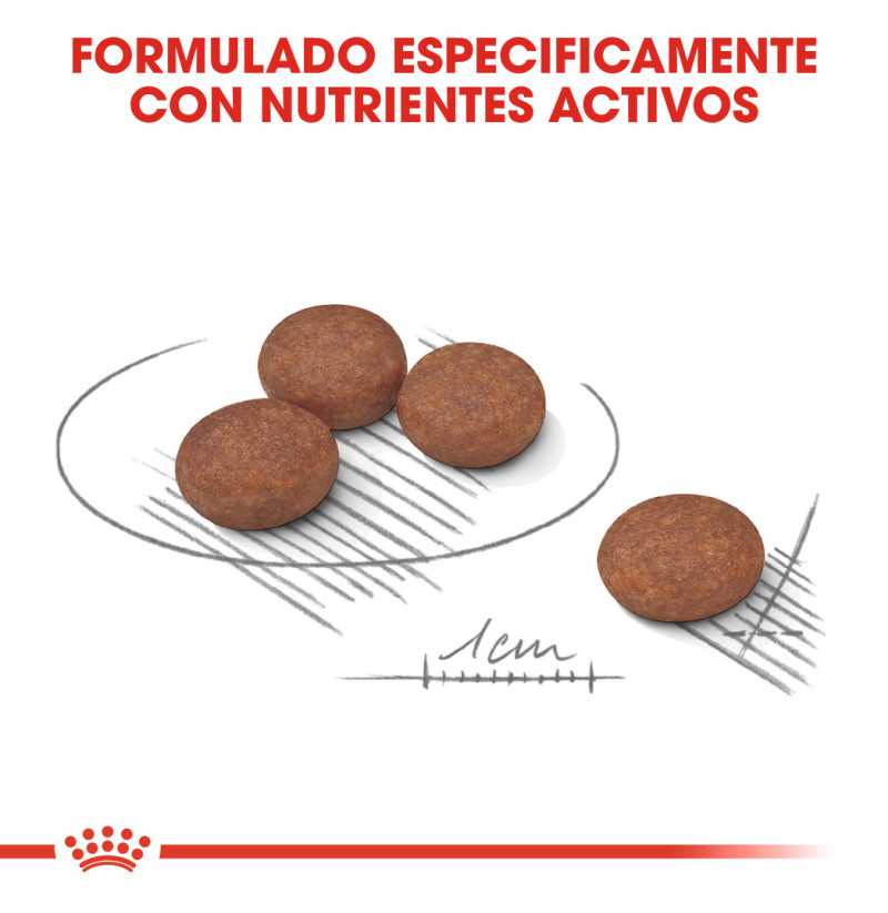 COMPOSICIÓN: proteínas de ave deshidratadas, arroz, grasas animales, hidrolizado de proteínas animales, aislado de proteínas vegetales*, harina de trigo, trigo, cebada, gluten de maíz, pulpa de remolacha, levaduras completas y partes de las mismas, aceite de pescado, aceite de soja, fibras vegetales, minerales, fructo-oligosacáridos, extracto de rosa de la India (fuente de luteína).
