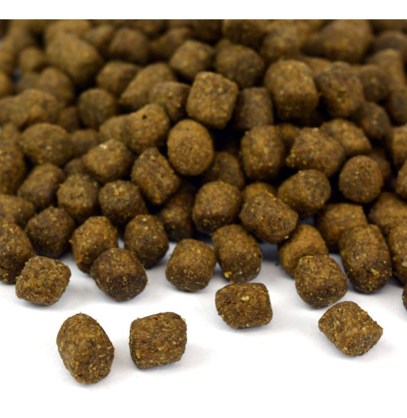 proteína 28%, contenido de grasa 12%, fibra bruta 4%, ceniza 6%, Omega 6: 6.66%, Omega 3: 0.1%