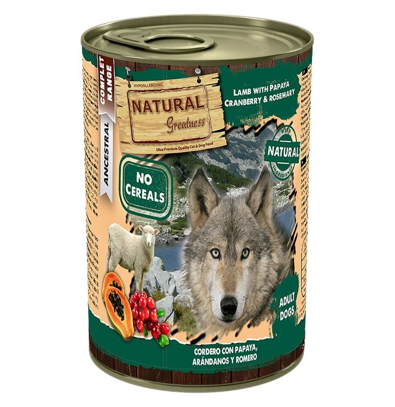 Latas de Cordero con Papaya, Arándanos y Romero para perros
