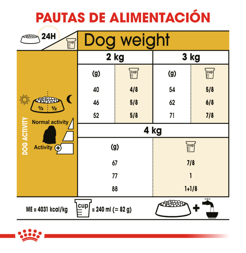 PESO DEL PERRO | POCA ACTIVIDAD | ACTIVIDAD MODERADA | MUCHA ACTIVIDAD |