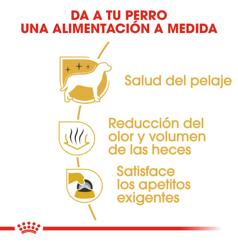 COMPOSICIÓN: maíz, arroz, proteínas de ave deshidratadas, grasas animales, hidrolizado de proteínas animales, proteínas de cerdo deshidratadas, harina de maíz, aislado de proteínas vegetales*, pulpa de achicoria, aceite de soja, aceite de pescado, levaduras completas y partes de las mismas, minerales, fructo-oligosacáridos, aceite de borraja (0,1%), extracto de rosa de la India (fuente de luteína), hidrolizado de crustáceo (fuente de glucosamina), hidrolizado de cartílago (fuente de condroitina).