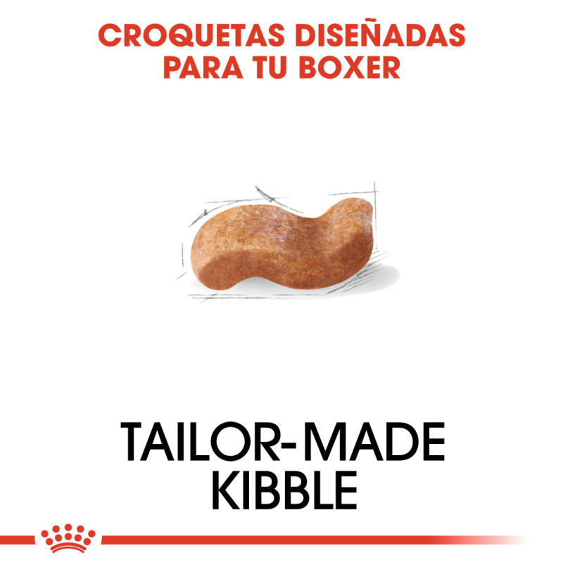 El Royal Canin Boxer Adult es el indicado para un perro adulto a partir de los 15 meses. La receta destaca por su composición especial, ya que tiene un contenido adaptado de proteínas y L-carnitina que puede contribuir a la conservación de la masa muscular de la mascota. El Bóxer es un perro muy activo y vital por lo que necesita una nutrición también especial que se adapte a su estilo de vida y favorezca a su salud y este a la altura de su intensa actividad física. Esta alimentación contiene nutrientes de alta calidad, como la taurina y los ácidos grasos Omega 3, EPA y DHA, que son beneficiosos para la función cardiaca del animal. El complejo de antioxidantes le ayuda a la neutralización de los radicales libres, que fortalecen las defensas del perro. Debido a la forma de su cabeza y de su mandíbula, el bóxer tiene una técnica especial para comer, por eso las croquetas están diseñadas con una forma que facilita la ingesta y la masticación antes de tragar.