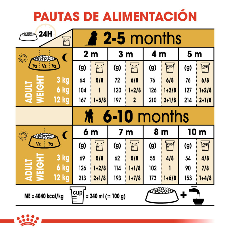 EDAD EN MESES | PESO FINAL 3KG | PESO FINAL 6KG | PESO FINAL 12KG |