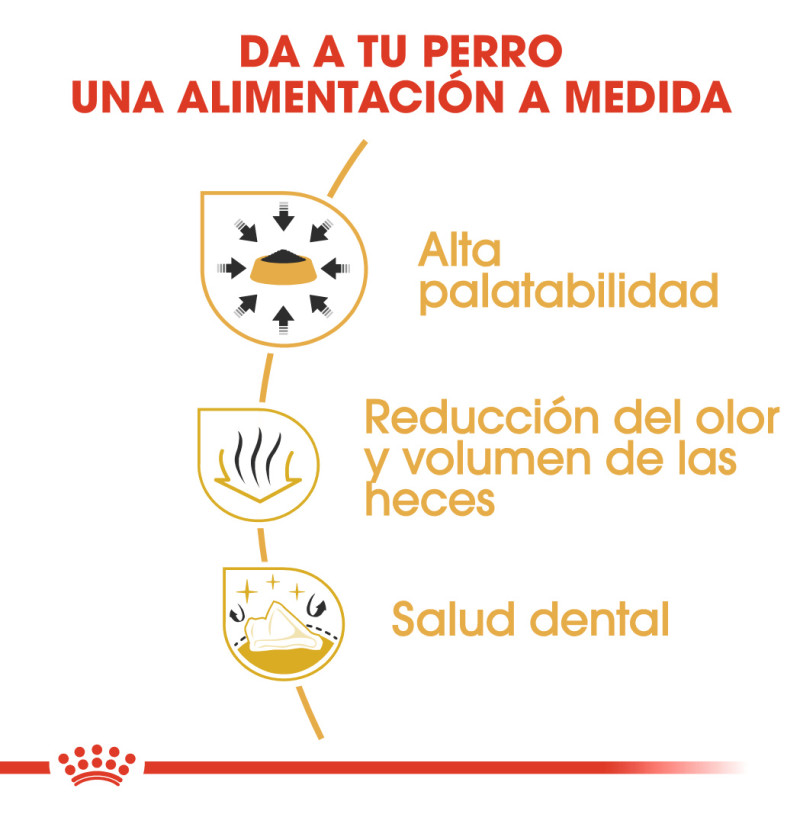 Chihuahua Adult de Royal Canin es un alimento apto para Chihuahuas de más de 8 meses y ha sido especialmente formulado teniendo en cuenta las necesidades nutricionales de tu perro adulto, es muy apetecible y es capaz de satisfacer el apetito de los Chihuahuas más exigentes, gracias a la combinación de una croqueta de forma y tamaño adaptados. Tiene una formulación exclusiva de nutrientes y la inclusión de aromas específicos. Además, los nutrientes que contiene también favorecen la función digestiva de tu perro, lo que reduce la cantidad de heces, ¡así como su mal olor! Para favorecer la salud dental de tu Chihuahua, contiene quelantes de calcio, que ralentizan la formación y la acumulación de sarro. Para adaptarse a las preferencias individuales de cada perro.