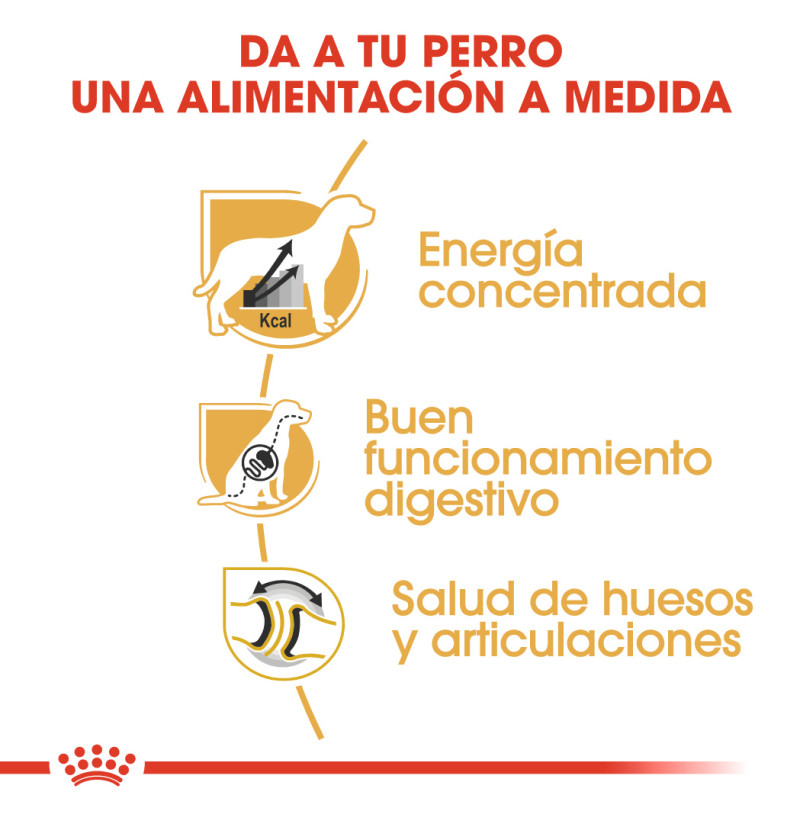 COMPOSICIÓN: grasas animales, tapioca, proteínas de ave deshidratadas, aislado de proteínas vegetales*, harina de maíz, arroz, hidrolizado de proteínas animales, fibras vegetales, minerales, aceite de pescado, pulpa de remolacha, aceite de soja, levaduras completas y partes de las mismas, hidrolizado de levaduras (fuente de manano-oligosacáridos), hidrolizado de crustáceo (fuente de glucosamina), extracto de rosa de la India (fuente de luteína), hidrolizado de cartílago (fuente de condroitina).