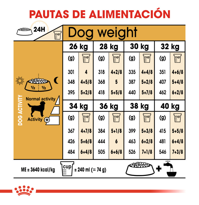 PESO DEL PERRO | BAJA ACTIVIDAD | ACTIVIDAD NORMAL | ALTA ACTIVIDAD |