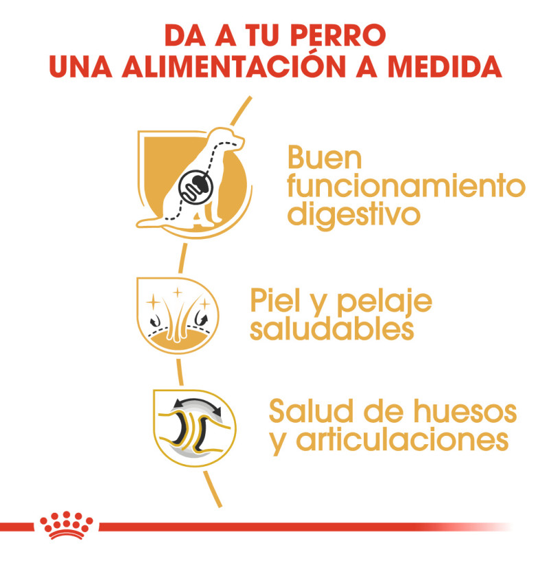 Royal Canin Pastor Alemán Adult es un alimento apto para Pastores Alemanes a partir 15 meses y ha sido especialmente formulado teniendo en cuenta las necesidades nutricionales de tu perro adulto. Contribuye al mantenimiento de una salud digestiva óptima. Esto es posible gracias a la inclusión de proteínas altamente digestibles (L.I.P.) y a la selección de fibras específicas que limitan la fermentación intestinal y ayudan a mantener el equilibrio de la flora intestinal. Favorece la función de barrera cutánea mediante un complejo específico. También contiene ácidos grasos omega 3 EPA y DHA. Estos nutrientes ayudan a nutrir y favorecer la salud de su piel y su pelo. Los Pastores Alemanes son perros conocidos por su alegre temperamento y su alto nivel de actividad. Para ello, es importante que reciba una alimentación con nutrientes que favorezcan el mantenimiento de sus huesos y articulaciones fuertes y saludables. Por eso, está enriquecido con nutrientes específicos que hacen posible que tu perro tenga unos huesos y unas articulaciones sanas y fuertes. Además, esta fórmula también contribuye al mantenimiento de un peso saludable.