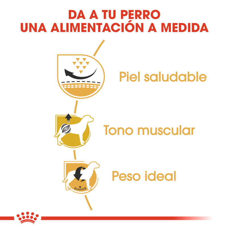 Royal Canin Carlino Adult es un alimento indicado para carlinos de más de 10 meses y ha sido específicamente formulado teniendo en cuenta las necesidades nutricionales de tu perro adulto. Los carlinos presentan pliegues en la piel. En estas zonas se puede alcanzar una temperatura más elevada y retener humedad; por eso es importante que su dieta favorezca especialmente la salud de su piel. La fórmula exclusiva favorece la función barrera cutánea, así como un estado óptimo de la piel en general. También aporta un contenido nutricional que favorece el mantenimiento del tono muscular de tu perro. Los carlinos tienen características muy específicas: una cabeza grande y un cuerpo corto y musculoso. Sus mandíbulas y conformación cefálica le dificultan la prensión de la comida y tienden a deglutir sin masticar el alimento. La croqueta ha sido específicamente diseñada para los perros de esta raza y así, tanto su forma como su tamaño han sido diseñados para facilitar la prensión y estimular la masticación.