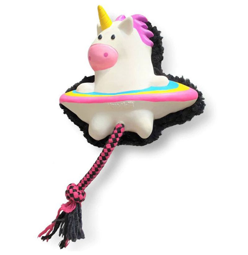 El juguete unicornio magic mikey de Max&Molly para perros se compone de una cuerda, un sonido chirriante, un diseño divertido y una parte trasera muy suave y acolchada que se puede usar fácilmente para descansar.