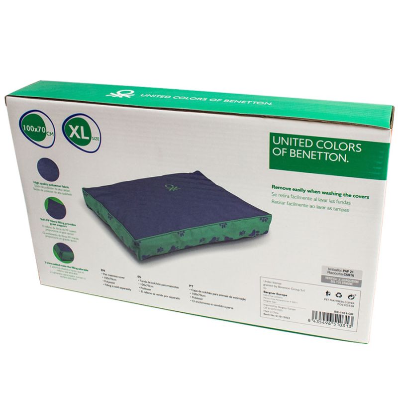 La funda del Colchón Benetton de Huellas azul y verde son ideales para que nuestras mascotas se puedan echar una cabezadita tranquilamente en su espacio.