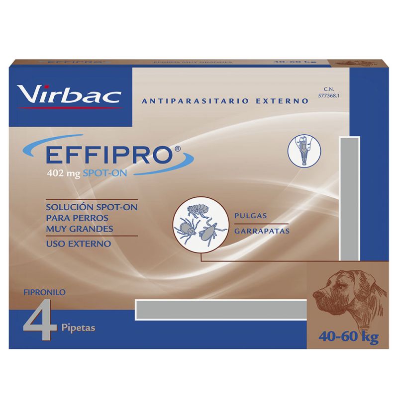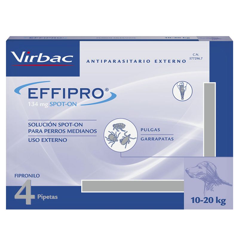 Este producto para perros es efectivo contra pulgas y garrapatas, ya que contiene Fipronil que es un eficaz insecticida y acaricida que actúa contra el sistema nervioso de los parásitos, provocándoles la muerte.