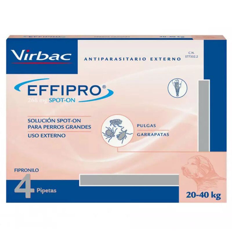 1 pipeta de 2,68ml por perro con peso superior a 20 Kg y hasta 40 Kg de peso corporal.