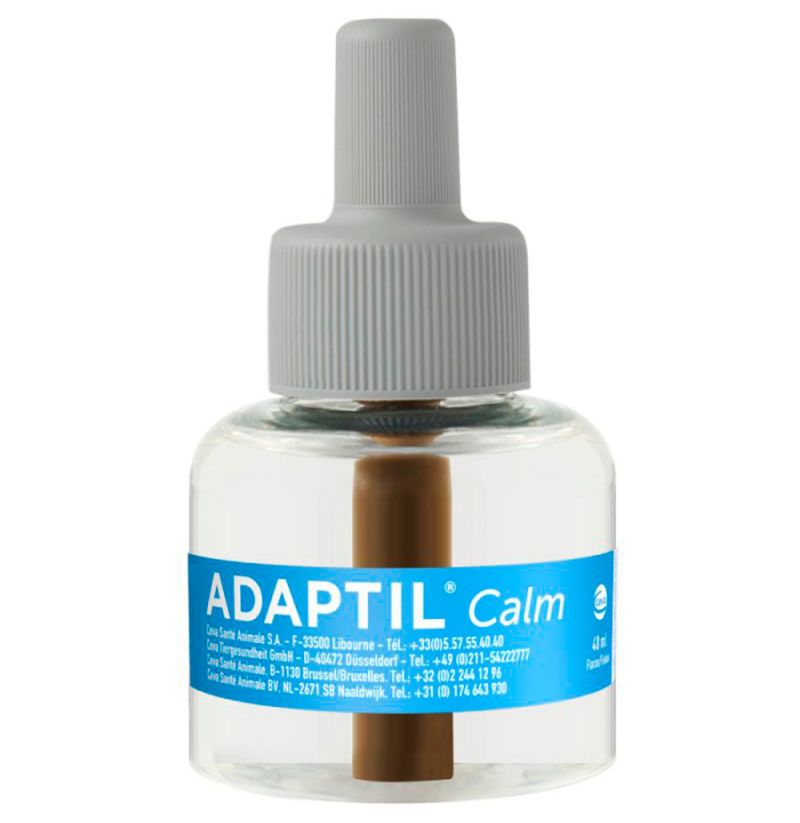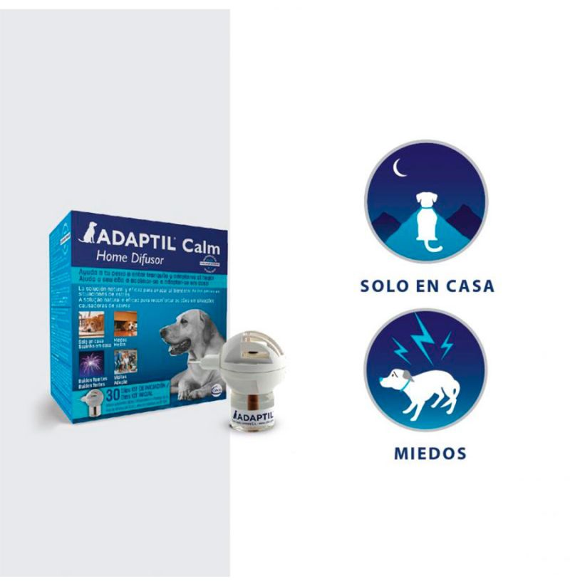 Adaptil Calm Difusor es la solución adecuada para ayudar a estar a tu perro tranquilo en situaciones de estrés como puede ser el quedarse en casa solo, adaptación a una nueva familia o durante el aprendizaje, cuando tienen miedo a ruidos fuertes (fuegos artificiales). Adaptil ayuda a reforzar el vínculo con la mascota, ayudándole a superar aquellas situaciones que le producen estrés. El efecto que tiene de manera continua favorece al bienestar de la mascota, con una eficacia demostrada.