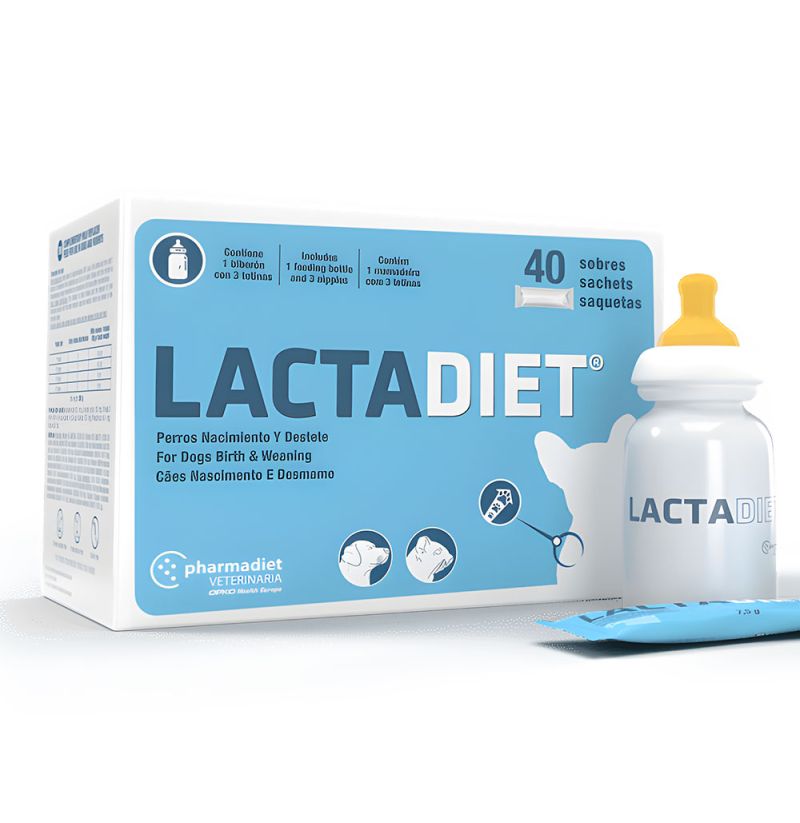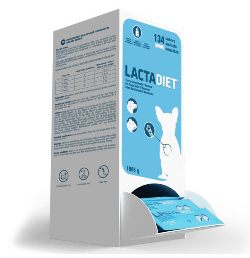 Lactadiet leche para el nacimiento y destete de cachorroses una leche maternizada instantánea a base de leche descremada enriquecida en Omega 3 y 6, vitaminas y oligoelementos para el correcto desarrollo del cachorro. Aporta todos los nutrientes necesarios a los cachorros con problemas de lactancia o donde el aporte de leche sea insuficiente o pobre de nutrientes, por lo que ayuda al desarrollo cerebral y visual del cachorro.