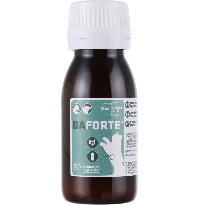 Daforte es una medicación excelente. Mi gato sufre de diarreas continuas y desde que tona Daforte, están controladas. Además, le ayuda a tener apetito y come de maravilla. Espero que el laboatorio no deje de elaborarlo. Muchas gracias por el envío tan rápido a mi domicilio.
